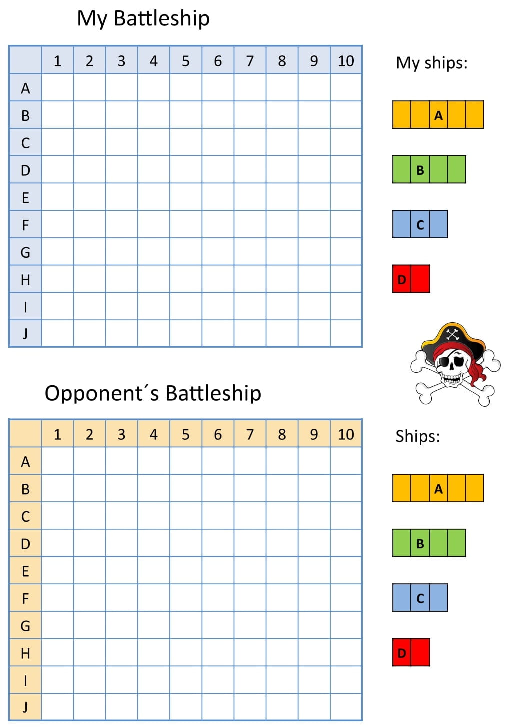 - On My Battleship grid, secretly draw your ships.